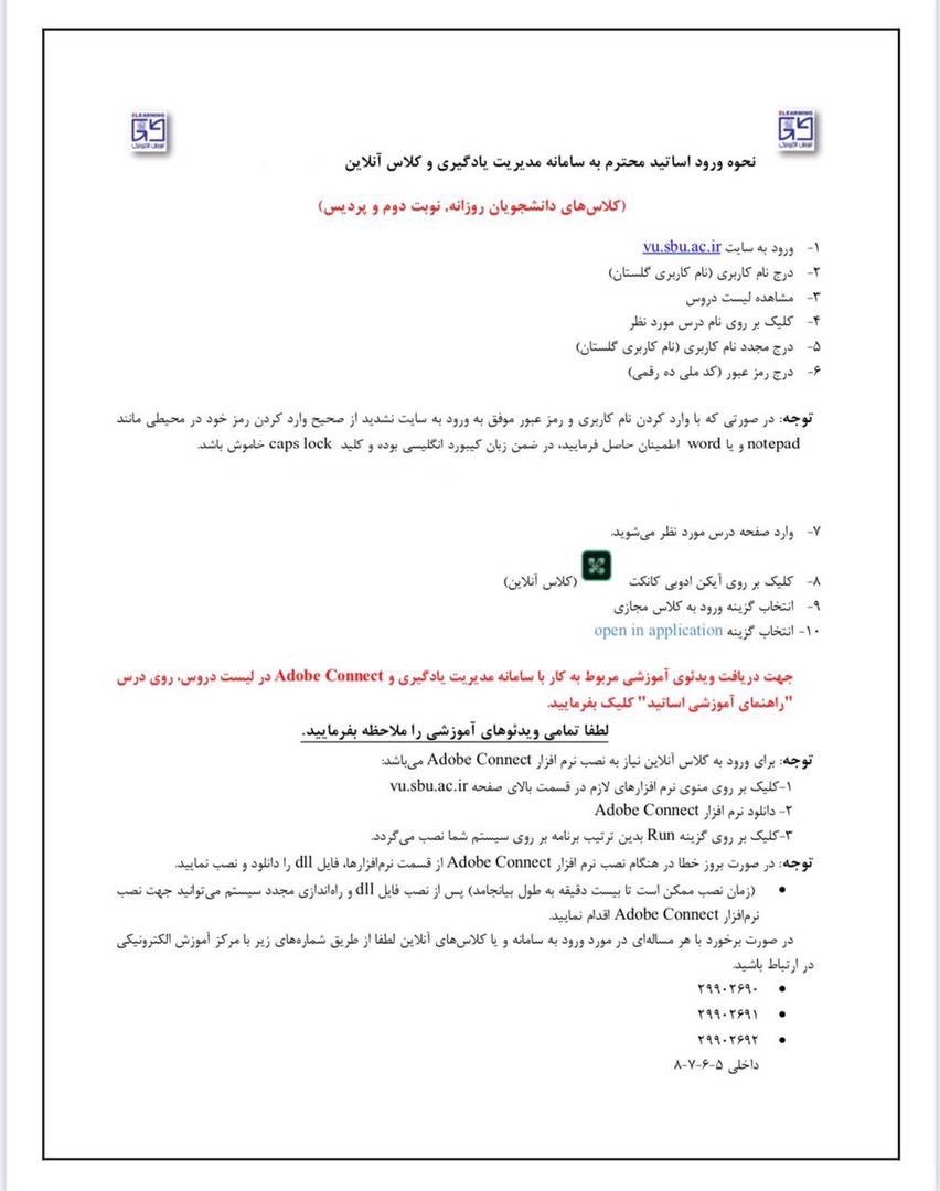 - كليه كلاس هاى آموزشى به صورت غيرحضورى (در سامانه (LMS) بركزار مىشود.